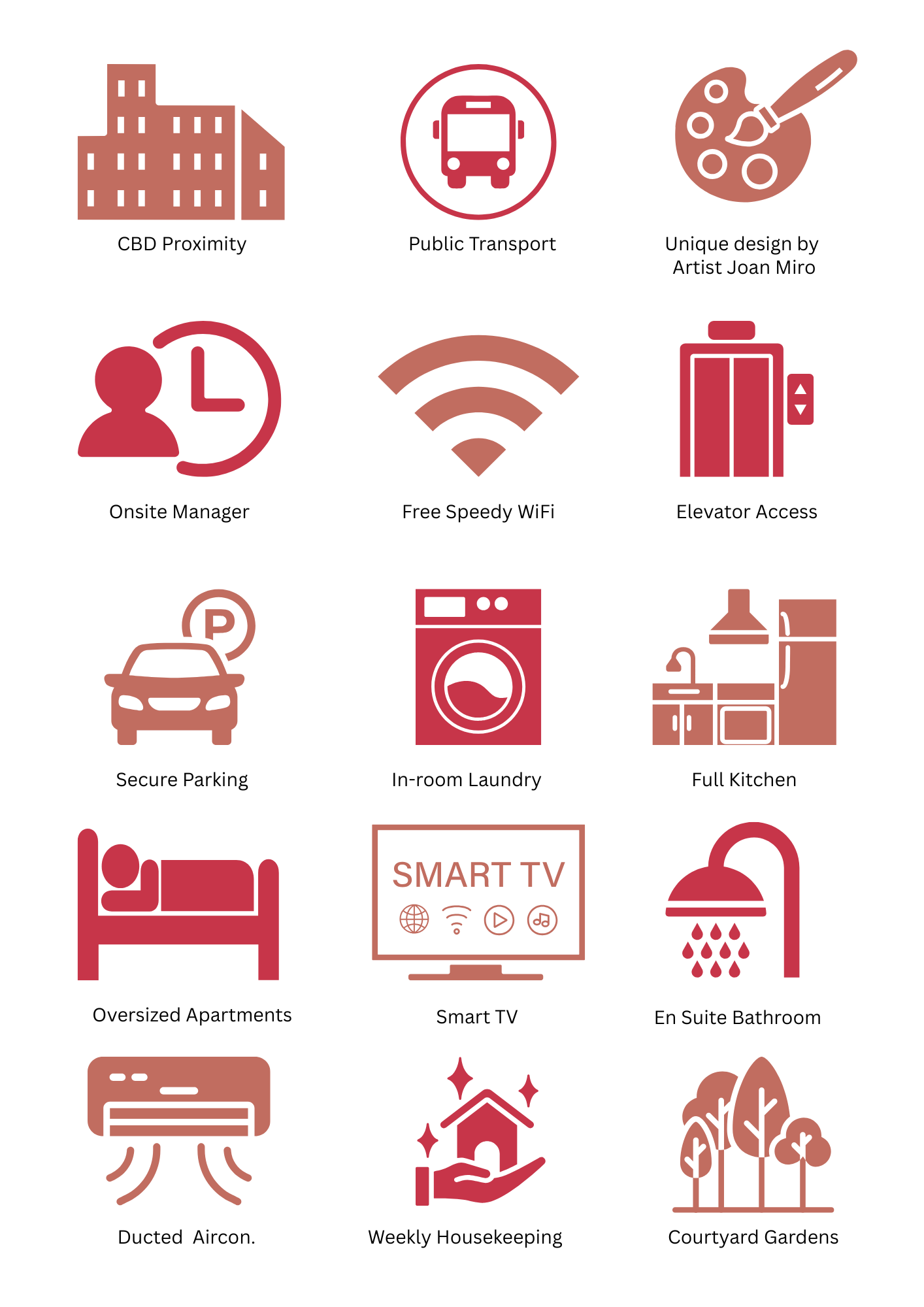Miro Apartments offers a tranquil retreat in the heart of Fortitude Valley, Brisbane City, combining comfort and style. Our spacious, self-contained 1- & 2-bedroom apartments feature modern furnishings, SmartTV, laundry facilities, kitchen, balcony, and complimentary WiFi, providing the ultimate relaxation experience. For the best rates and complimentary parking book direct. The Miro’s prime location near the Brisbane CBD, restaurants, cafes, and nightlife makes it an ideal choice for those seeking a central, convenient location.